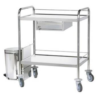 CHARIOT DE SOINS À 2 NIVEAUX AVEC POUBELLE ET TIROIR